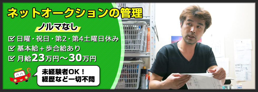 | 募集職種 | リサイクルパーツ(車 中古部品)ネットオークション入力スタッフ(未経験者OK) |