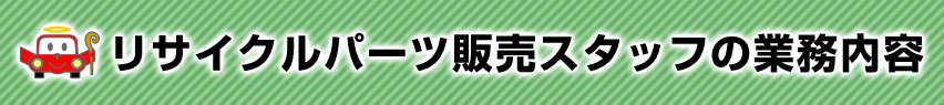 | 募集職種 | リサイクルパーツ(車 中古部品) 販売スタッフ(業界未経験者OK) |